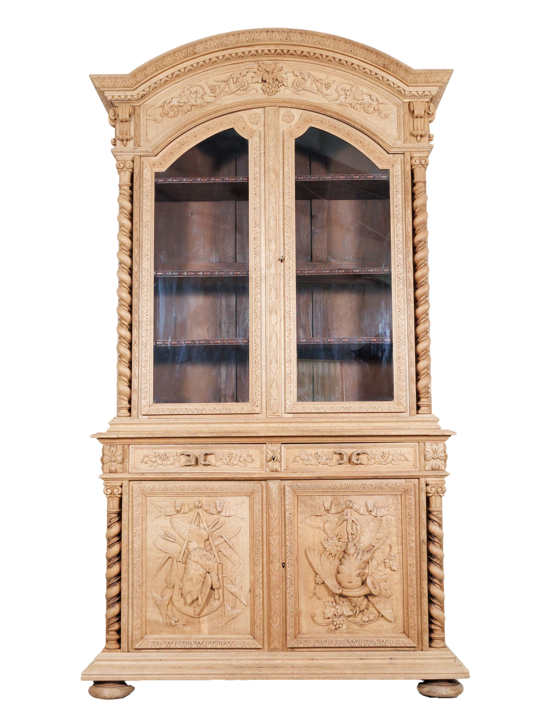 An antique French bibliothèque anchors Axel Vervoordt’s study at Kasteel van ‘s-Gravenwezel. Photo: Courtesy the Axel Vervoordt Company.
