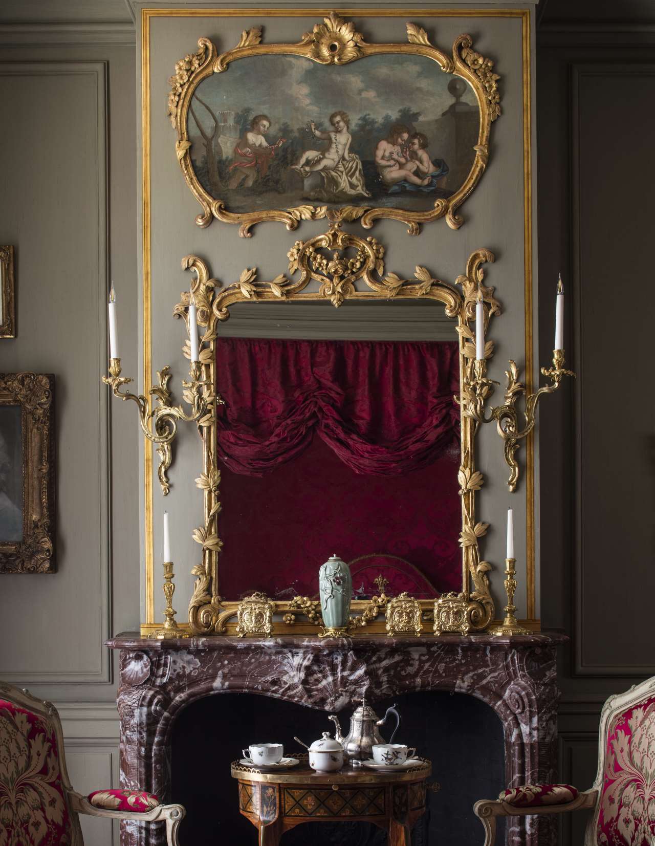 Another rare French trumeau with gilded candle sconces mounted to the frame, Château de Villette.