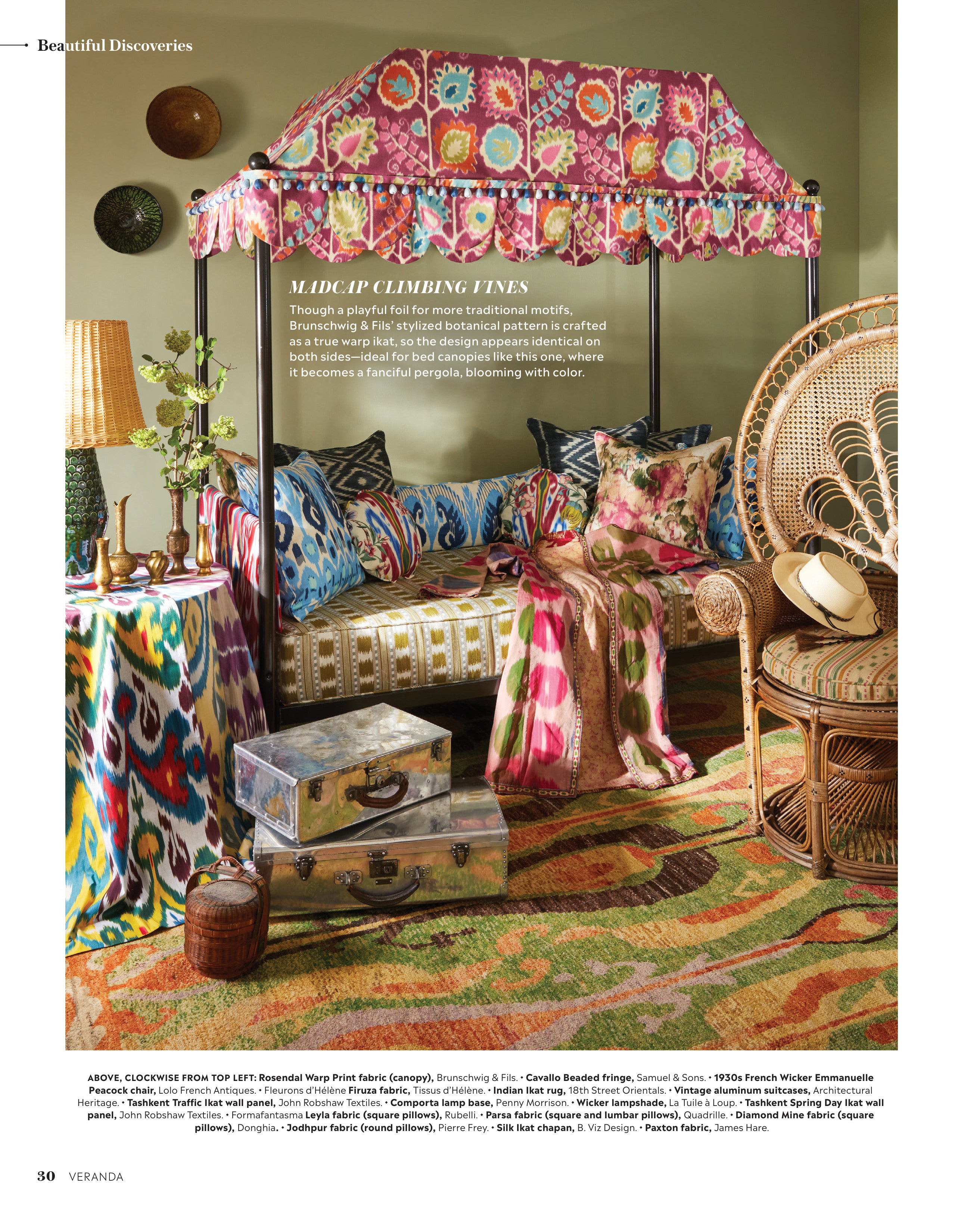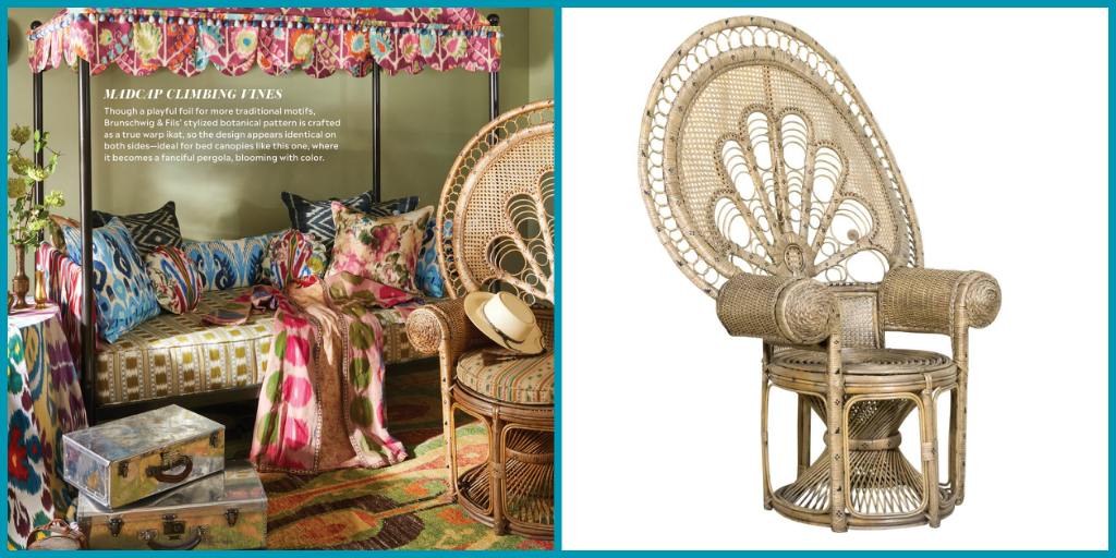 This week, it’s the iconic Peacock Chair — a symbol of boho royalty and vintage French flair. Seen in the July/ August 2025 issue of Veranda, styled in riotous color and lush texture, and sourced here, in all its rare 1930s French wicker glory.